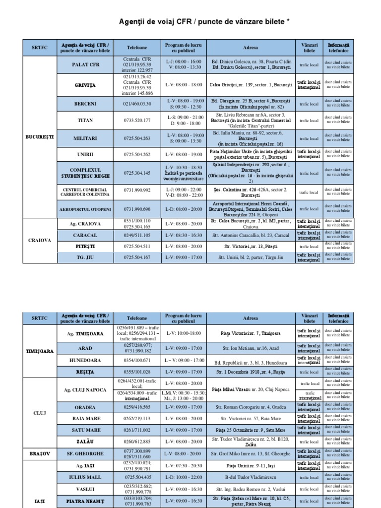 Noi Agentii Voiaj Cfr In Bucuresti Puteti Cumpara Bilete De La