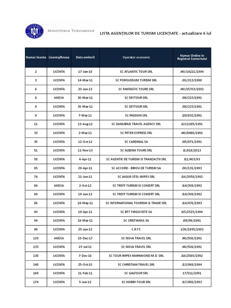 Lista Agentiilor De Turism Licentiate Actualizare 06 07 2018