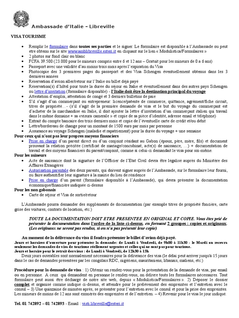Ambassade D Italie Libreville Formulaire Www Amblibreville